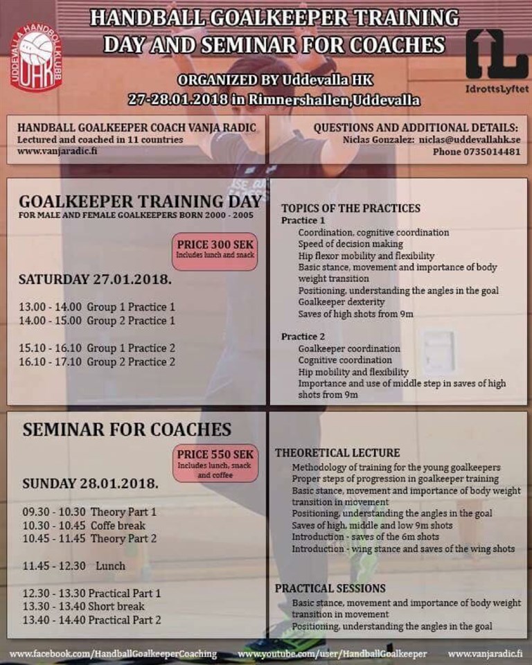 Ta chansen att komma till Uddevalla 27-28 Januari för målvaktsträning samt målvaktssemenarium i Rimnershallen! Anmäl dig idag! niclas@uddevallahk.se /073-501 44 81